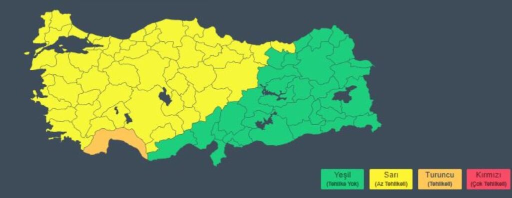Meteoroloji Genel Müdürlüğünden alınan tahminlere göre yağışların; Marmara, Kıyı Ege, Batı Akdeniz, Adana, Düzce, Zonguldak, Bolu ve Bartın çevrelerinde kuvvetli, İzmir, Aydın, Muğla çevreleri ile Antalya’nın doğu kesimlerinde yer yer çok kuvvetli olması bekleniyor.