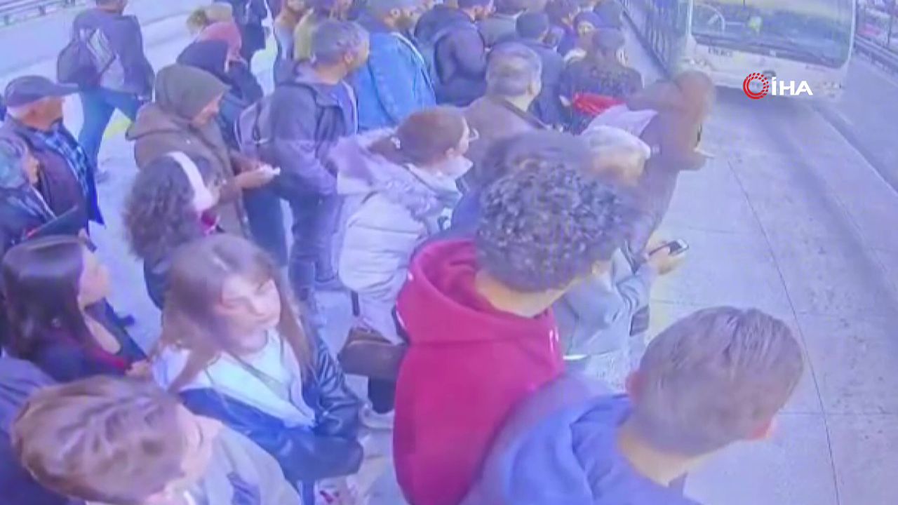 Henüz belirlenemeyen bir nedenle bayılarak metrobüs yoluna düşen kızın o anı güvenlik kamerasına yansıdı. Görüntülerde, kızın durakta beklediği, bayıldıktan sonra metrobüs yoluna düştüğü ve daha sonra metrobüsün kıza çarptığı görülüyor.