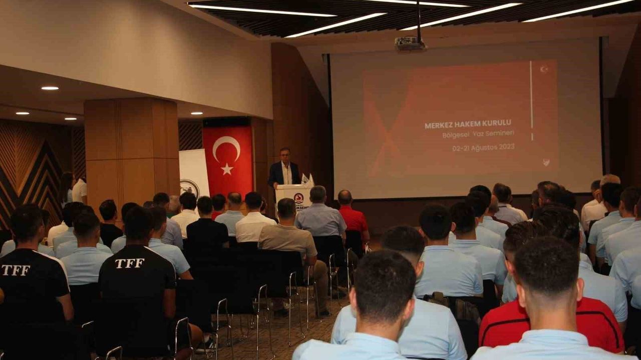 MHK Bölgesel Yaz Semineri Denizli Büyükşehir Belediyesi Nihat Zeybekçi Kongre ve Kültür Merkezi’nde yapıldı. Seminere; Merkez Hakem Komitesi Başkanı Ahmet İbanoğlu, 4. Bölge sorumlusu Ünsal Çimen, Bölgesel Kurul üyeleri Serkan Gencerler ve Tufan Akçay, il hakem kurulu başkanları, gözlemciler, Denizli Aydın Muğla ve Uşak illerindeki klasman hakemleri katıldı. Sezon öncesi hakemleri bilgilendirmek, değişen kural kaide ve yorumlar hakkında açıklamalarda bulunuldu. Seminere katılan hakemlere ve gözlemcilere seslenen Merkez Hakem Komitesi Başkanı Ahmet İbanoğlu, kendilerini her alanda geliştirmelerini tavsiye ederek, “Yaptığımız işlerin temelinde adalet duygusunun olduğunu göreceksiniz. Adil olacağız. Bunları hafta hafta göreceksiniz. Her birinizin değeri bizim için başlangıçta sıfırlandı. Aynı çizgideyiz. Bundan sonraki aşamada daha çok çalışan daha çok kendisini geliştiren kendisini ön planda bulabilir. Maçlarınıza çıkarken çok ciddi şekilde hazırlıklı gelin. Artık atletik testlerde koşamama hastaydım, karnım ağrıdı başım ağrıdı bahanesi yok arkadaşlar” dedi.