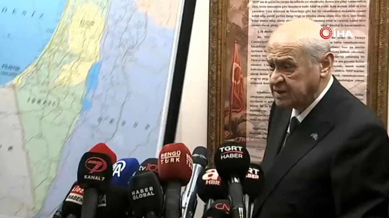 Filistin’in kurtulması için ne yapılması gerektiğini değerlendiren MHP lideri Bahçeli, “İsrail’in aklını başına alması lazım. Amerikalı dayılarına da güvenmemesi lazım. Türkiye’nin etrafında kenetlenerek bu sıkıntıları aşabilmenin bir yolunu bulabilmesi lazım. Sorun ne Türkiye’dedir ne dünyadadır. Amerika ile İsrail arasındadır. Sorunu çözecekse onlar çözecek” ifadelerini kullandı.