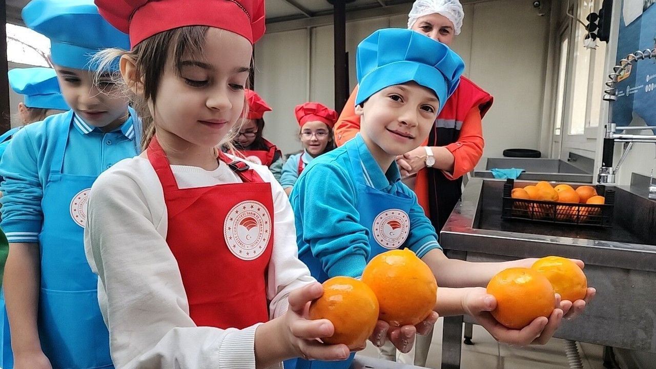 Çanakkale’nin Biga ilçesinde Ağaköy 2. Sınıf öğrencileri, gıda israfının önüne geçmek için evde bulunan meyvelerden reçel yaptı.