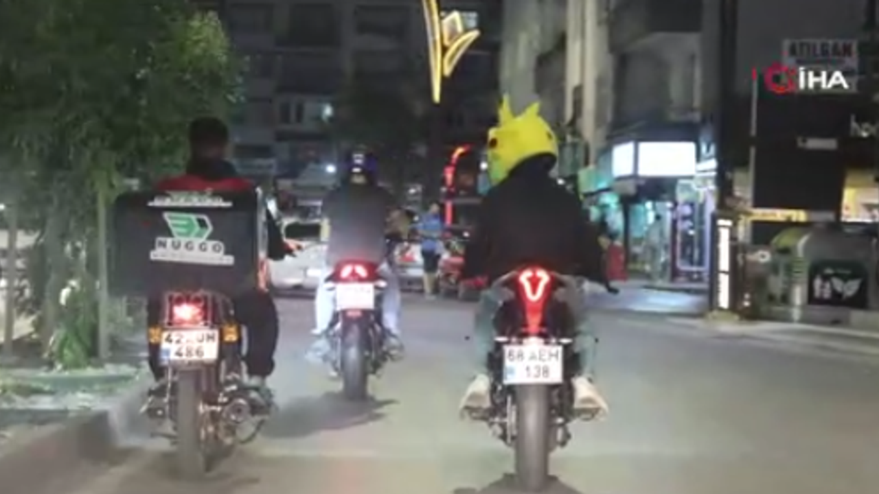 Görüntüler Aksaray’ın en işlek caddelerinden biri olan Taşpazar Mahallesi Ebulfez Elçibey Caddesi üzerinde yansıdı kameralara. 68 AEH 138 ve 73 AAU 907 plakalı 2 motosikletle caddeye çıkan 2 sürücü, motosiklete patinaj çektirip hem kendi hem de diğer araç sürücülerin canını hiçe sayarak tehlikeli sürüş yaptı. Sürücülerin yaptığı tehlikeli sürüş anları bir araçta yolcu konumundaki vatandaşın cep telefonu kamerasınca kaydedilirken, görüntülerde motosiklet sürücülerinin tek şeritli yolda yan yana seyrederek muhabbet ettikleri, patinaj çektirerek ani şerit değiştirme yaptıkları, aşırı süratli motosiklet kullandıkları görülüyor. Trafikte seyir halinde olmalarına rağmen zaman zaman dönüp arkalarına bile bakan sürücülerin tehlikeli sürüşü cezasız kalmadı. Görüntüler üzerine Aksaray İl Emniyet Müdürlüğü Trafik Tescil ve Denetleme Şube Müdürlüğü ekipleri sürücülere “Saygısızca motosiklet kullanmak, tehlikeli şerit değiştirme” gibi kural ihlallerinden 3 bin 290’ar TL olmak üzere toplam 6 bin 580 TL para cezası kesti.
