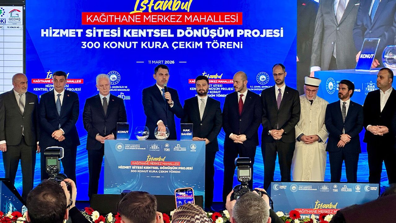 Çevre, Şehircilik ve İklim Değişikliği Bakanlığı öncülüğünde Kağıthane Belediyesi ve Toplu Konut İdaresi Başkanlığı (TOKİ) iş birliğiyle Kağıthane Merkez Mahallesi’ndeki Hizmet Sitesi Kentsel Dönüşüm Projesi tamamlandı. Proje kapsamında 300 konut için kura çekim töreni düzenlendi. Törene Çevre, Şehircilik ve İklim Değişikliği Bakanı Murat Kurum, Kağıthane Belediye Başkanı Mevlüt Öztekin, İstanbul Valisi Davut Gül, bazı protokol üyeleri, hak sahipleri ve vatandaşlar katıldı.