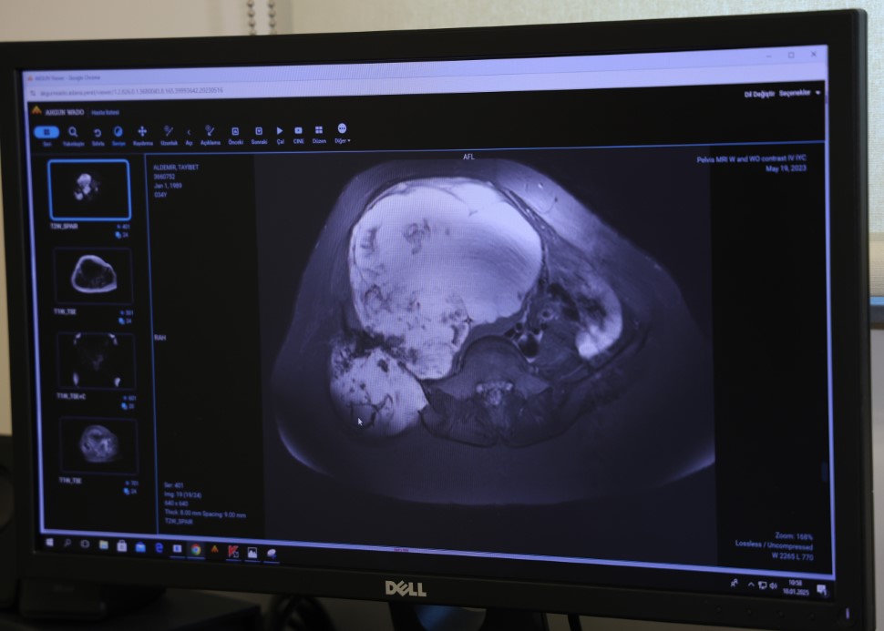 Burada Ortopedi ve Travmatoloji Kliniği’nde görevli Prof. Dr. Ahmet Kapukaya’ya başvuran Aldemir, yapılan tetkikler sonucu doktorunun da yönlendirmesiyle ameliyat olmaya karar verdi. Türkiye’de nadir yapılan ve 6 saat süren ‘Pelvik rezeksiyon’ ameliyatıyla genç kadının leğen kemiğindeki tümör temizlendi.