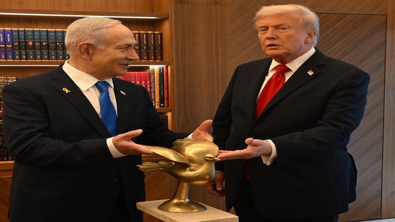 ABD Başkanı Donald Trump, Gazze'de ateşkese varılmasının ardından Orta Doğu ziyaretine başladı. Trump'ı taşıyan Air Force One, TSİ 10.00 sıralarında Tel Aviv'deki Ben Gruion Havalimanı'na indi. Mısır'da Şarm El-Şehy'te bugün yapılacak zirve öncesinde Trump, havalimanında İsrail Cumhurbaşkanı Isaac Herzog ve eşi, İsrail Başbakanı Binyamin Netanyahu ve eşi ve yetkililer tarafından karşılandı. Trump ve Netanyahu daha sonra İsrail Meclisi Knesset'e geçti. Trump ve Netanyahu burada ikili görüşme gerçekleştirirken Netanyahu, Trump'a Altın Güvercin hediye etti.
