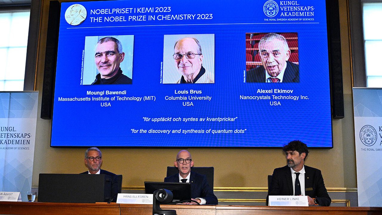 Dünyanın en prestijli ödülü olan 2023 Nobel Ödülleri’nin kimya alanındaki yeni sahipleri belli oldu. İsveç Kraliyet Bilimler Akademisi Genel Sekreteri Hans Ellegren, İsveç’in başkenti Stockholm’de düzenlenen basın toplantısında ödülün sahiplerini duyurdu. Ellegren, kimya ödülünün "kuantum noktalarının keşfi ve sentezi" dolayısıyla Massachusetts Teknoloji Enstitüsü Profesörü Moungi G. Bawendi, Columbia Üniversitesi Fahri Profesörü Louis E. Brus ve New York merkezli Nanocrystals Technology’de çalışan Alexei I. Ekimov'a verildiğini söyledi.