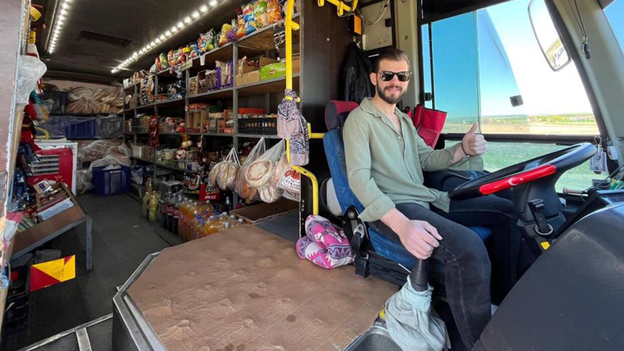"Kışın işlerimiz daha sakin, yazın çok canlı ve hareketli oluyor. Kışın daha çok karlı ve çamurlu yollardan geçtiğim için biraz mücadele istiyor, zorluyor baya. Pazartesi ve Perşembe hariç haftanın 5 günü çalışıyorum. Köylerde özellikle hayvancılık yoğun olduğu için tabii köpekleri de var, onlara poşet poşet ekmek götürüyorum. Onun dışında seyyar marketimizde tüp, çocuklar için dondurma çikolata gibi sevdikleri şeyler ve diğer tüm temel ihtiyaçlar satılıyor. Ayrıca özel bir istekleri olursa da söylüyorlar, bir sonraki gün getiriyorum. Herkesin ihtiyacını karşılamaya çalışıyoruz, aslında herkesin ayağına hizmet gibi oluyor. Bu otobüs daha öncesinde de köylerde çalışıyormuş; şansıma bana çok iyi denk geldi. İçi de zaten hazır ve yapılıydı, ben sadece dekorasyon anlamında birkaç şey ekleyip toparladım ve bu hale getirdim. Sabit dükkânımız üzerinden devam ettiğimiz için araba temel gıda satış aracı olarak geçiyor, projesi falan da çizilmiş. Ayrıca marketimizde kredi kartı da geçiyor."