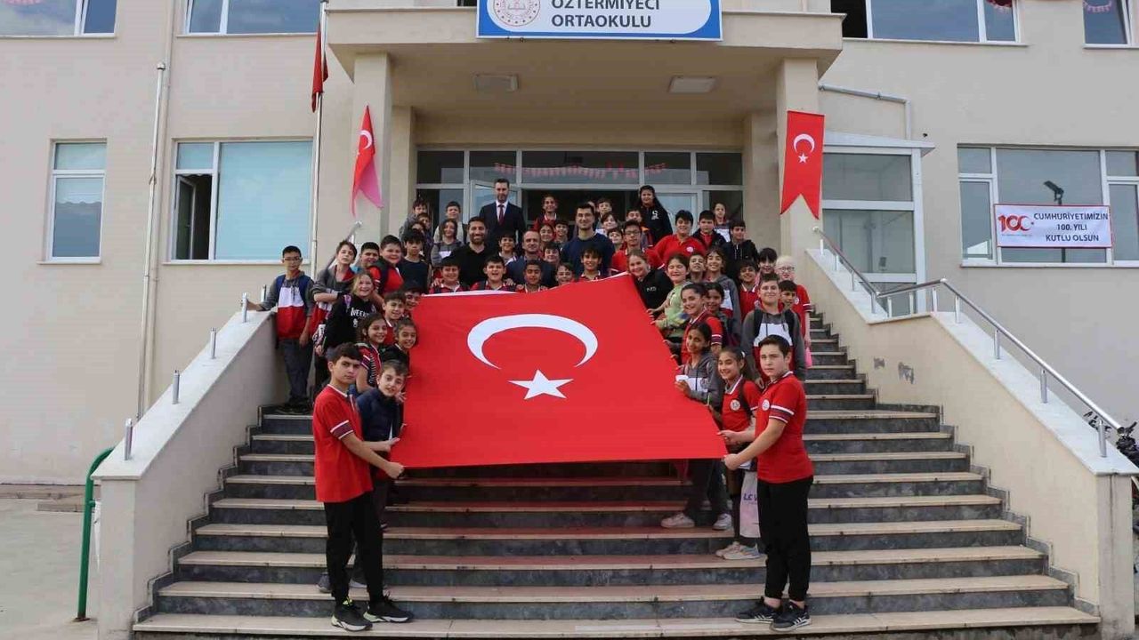 Bu projesine destek vermek amacıyla Düzce Gençlik ve Spor İl Müdürlüğü, Öztermiyeci Orta Okulu’na Baha Müderrisoğlu ile birlikte malzeme yardımı yaptı.