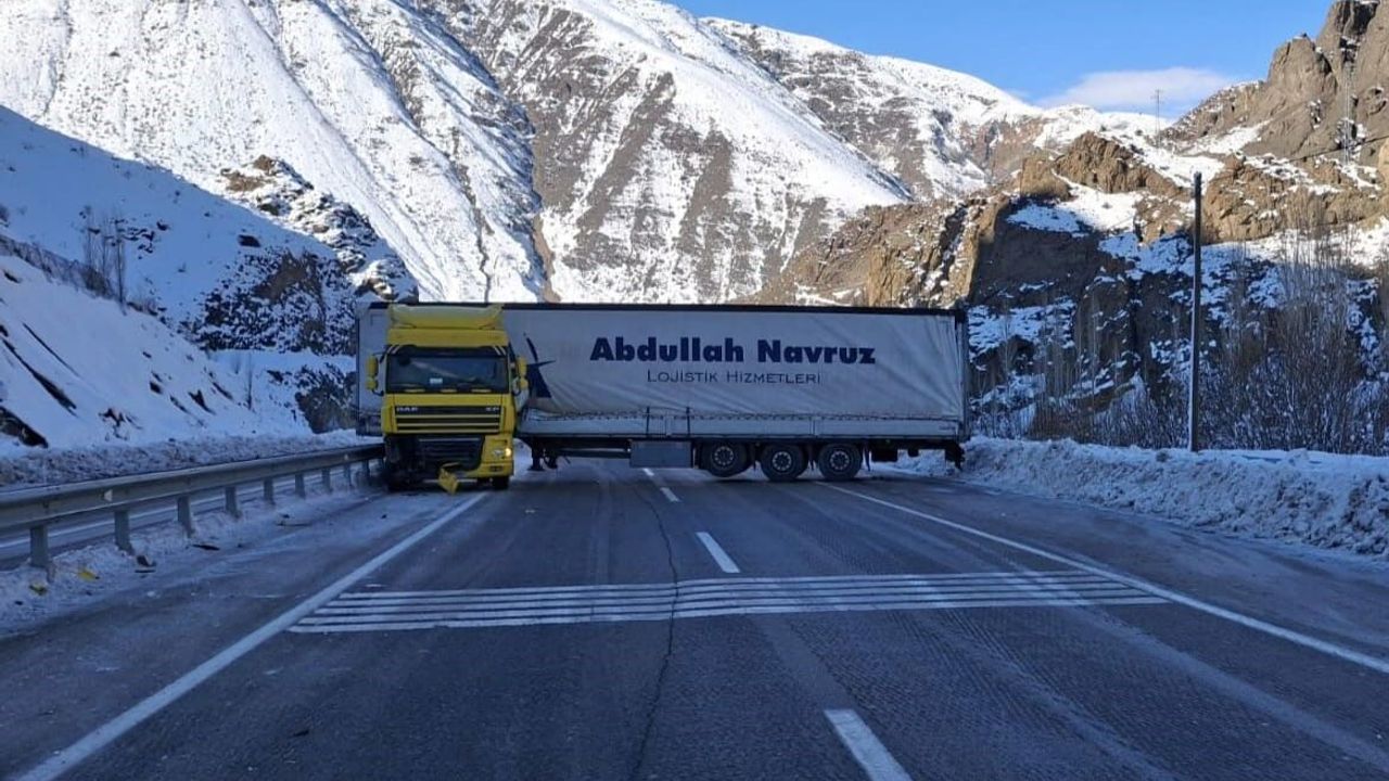 Edinilen bilgiye göre, Erzurum’dan Uzundere istikametine seyreden 38 ZL 969 plakalı Tır buzlanan yolda kayarak yolu trafiğe kapattı. Sürücünün direksiyon hakimiyetini kaybettiği Tır yolu trafiğe tamamen kapattı. Bariyerlere çarparak durabilen Tır’da sürücü kazayı yara almadan atlattı.