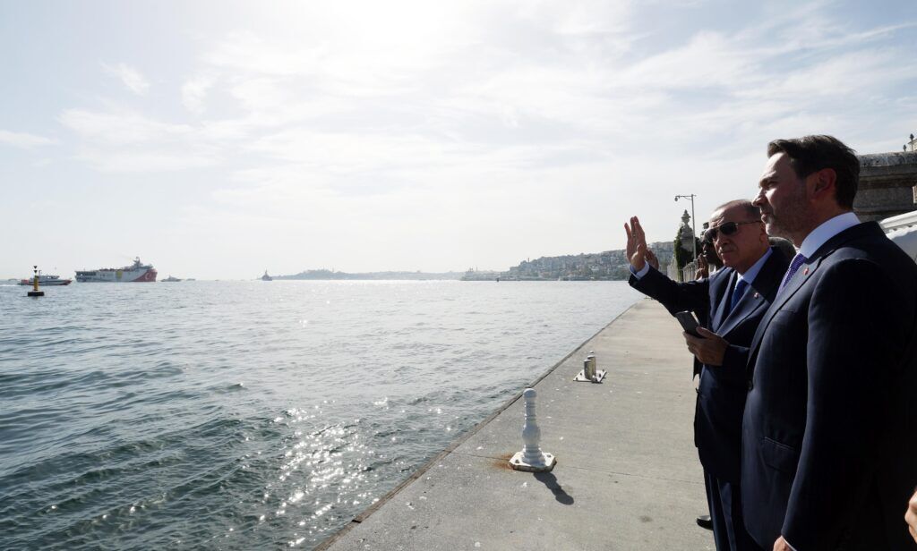Oruç Reis’in İstanbul Boğazı’nı geçişi sırasında Cumhurbaşkanlığı Dolmabahçe Çalışma Ofisi’nde bir tören düzenlendi. Törene Cumhurbaşkanı Recep Tayyip Erdoğan ile Enerji ve Tabii Kaynaklar Bakanı Alparslan Bayraktar, İçişleri Bakan Ali Yerlikaya, Dışişleri Bakanı Hakan Fidan ile Somali Federal Cumhuriyeti Petrol ve Maden Kaynakları Bakanı Abdirizak Omar Mohamed katıldı. Oruç Reis’i Somali’ye uğurlayan Cumhurbaşkanı Erdoğan, gemiye telefonla bağlanarak Kaptan Yaşar Özkan ile görüştü ve “Hayırlı yolculuklar.” diledi.
