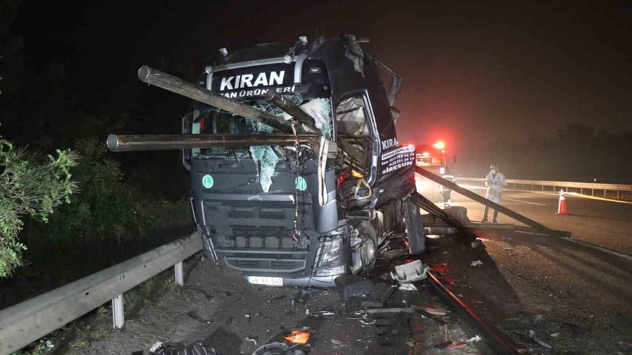 Alınan bilgiye göre, 28 EE 540 plakalı demir boru yüklü Volvo marka tır sürücüsü Hüseyin Özdemir (39), lastiğinin patlaması neticesinde emniyet şeridine park etti. Hüseyin Özdemir, lastik kontrolü yapmak için Sevgi Özdemir (39) ile tırdan indikleri esnada aynı istikamette seyreden Y.K. (26) idaresindeki 41 AEC 388 plakalı hurda yüklü Mercedes marka tır, park halindeki tıra arkadan çarparak yan yattı. Meydana gelen kazada Y.K. idaresindeki tır bariyerlere çarparak devrilirken Hüseyin ve Sevgi Özdemir olay yerinde hayatını kaybetti. Dehşet verici kazada, tırın taşıdığı demir borular ise sürücü camını kırarak dışarı çıktı. Durumun haber verilmesi üzerine bölgeye sağlık, itfaiye, polis ve jandarma ekipleri sevk edildi. Olay yerine gelen sağlık ekipleri yaralı olan Y.K. isimli tır sürücüsünü hastaneye sevk etti. Bölgede yapılan incelemelerin ardından Hüseyin ve Sevgi Özdemir’in cansız bedenleri hastane morguna sevk edildi. Meydana gelen kaza sebebiyle tek şeritten sağlanan trafik, araçların bulunduğu yerden kaldırılması sonrasında normale döndü. Kazaya ilişkin inceleme başlatıldı.