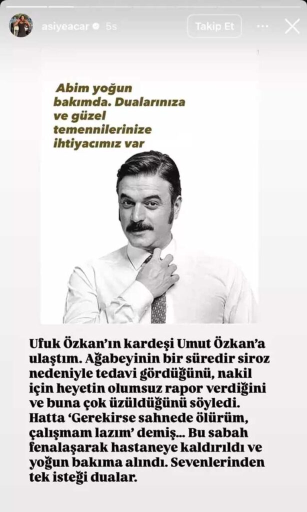 Ufuk Özkan’ın 16 Eylül 2025 sabahı hastaneye kaldırıldığı iddia edildi. Tiyatro ve Sahne Sanatları Platformu ile kardeşi Umut Özkan, intihar iddialarını reddetti; Özkan’ın siroz tedavisi gördüğü ve yoğun bakımda olduğu bildirildi. Detaylar ve son açıklamalar burada.