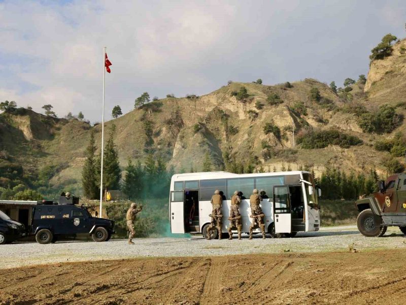 Aydın’da görev yapan özel harekat polislerinin "Ulaştırma Araçlarının Kaçırılması ve Meskûn Mahal Operasyonu" tatbikatı başarıyla gerçekleştirilirken, operasyon anında ortaya çıkan görüntüler ise gerçeğini aratmadı.