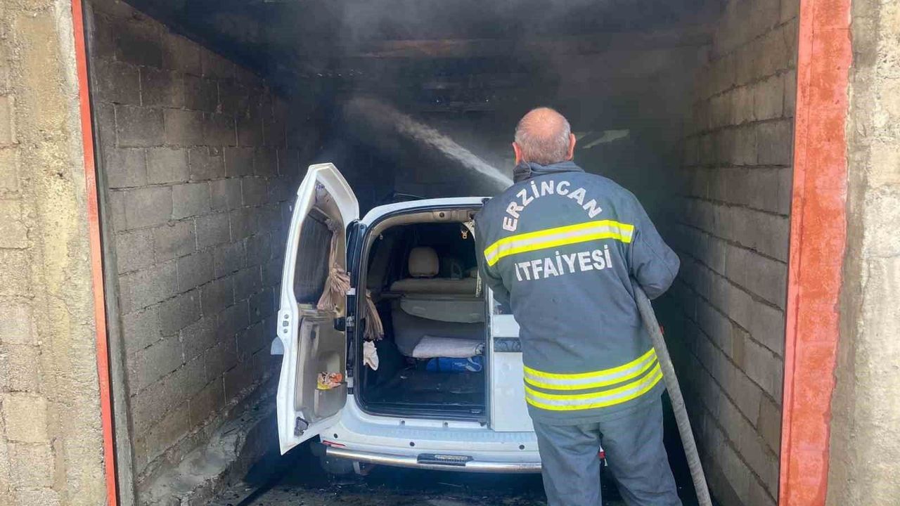 Erzincan’da park halindeki otomobil yanarak kullanılamaz hale geldi.