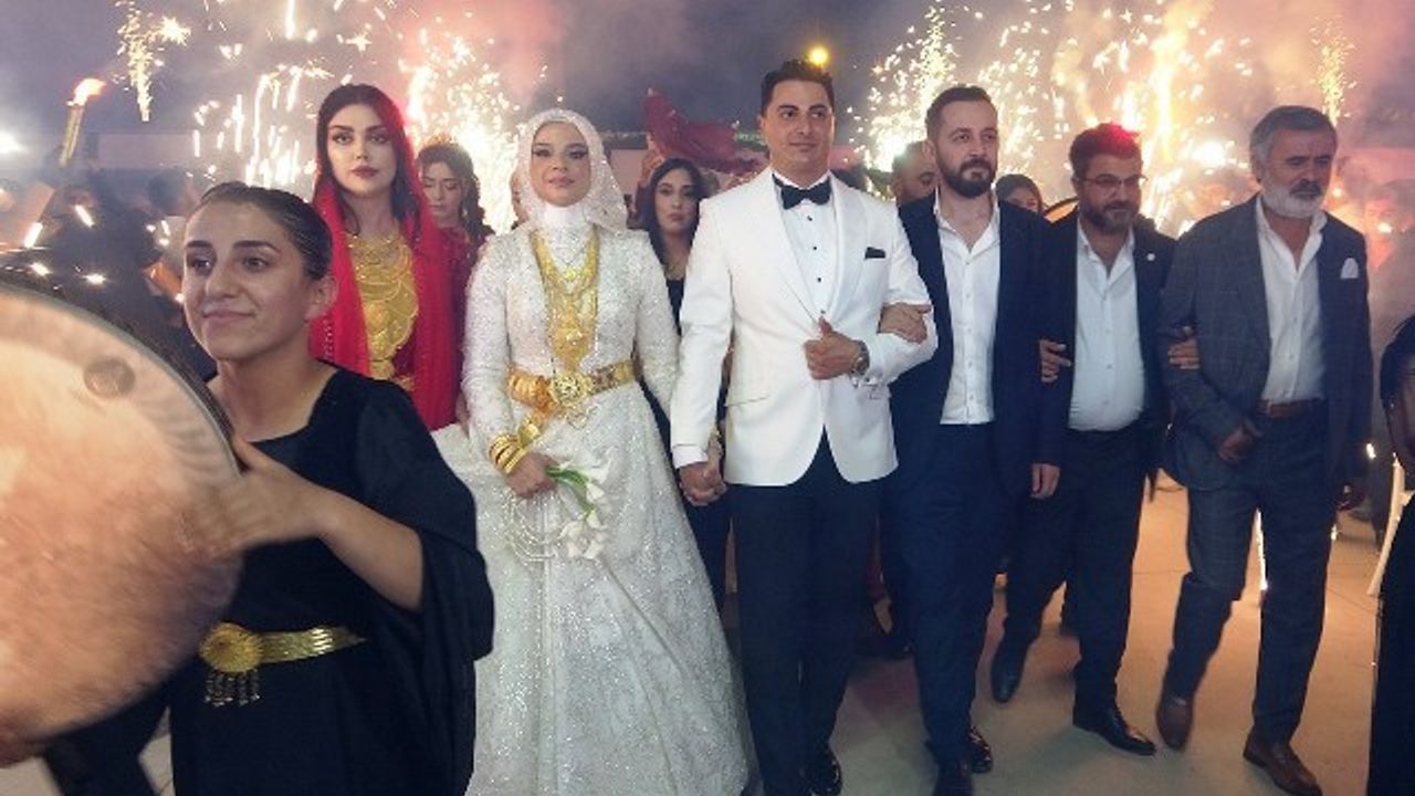 Düğünde davetliler tarafından kilolarca altın ve milyonlarca liralık takı takıldı.