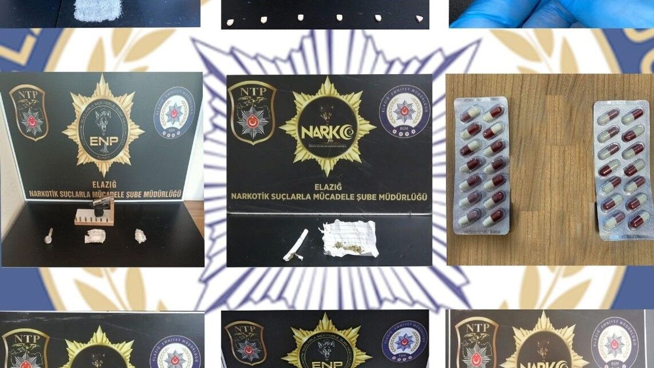 Elazığ Cumhuriyet Başsavcılığı koordinesinde İl Emniyet Müdürlüğü Narkotik Suçlarla Mücadele Şube Müdürlüğü tarafından, uyuşturucu ile mücadele kapsamında uyuşturucu madde kullanan şahıslara ve sokak satıcılarına yönelik yapılan uygulamalarda 12 şüpheli şahıs yakalandı. Yapılan aramalarda, 9 parça halinde 67,71 gram metamfetamin maddesi, 2,52 gram esrar maddesi, 0.93 gram kokain maddesi, 28 adet sentetik ecza maddesi, 20 adet extasy hap, 2 adet ruhsatsız tabanca ve tabancalara ait 8 adet fişek, uyuşturucu ticaretinden elde edildiği değerlendirilen 4 bin 800 Türk lirası ele geçirildi. Şüpheli şahıslar ve suç unsurları hakkında gerekli adli ve idari işlemlerin yapıldığı kaydedildi.