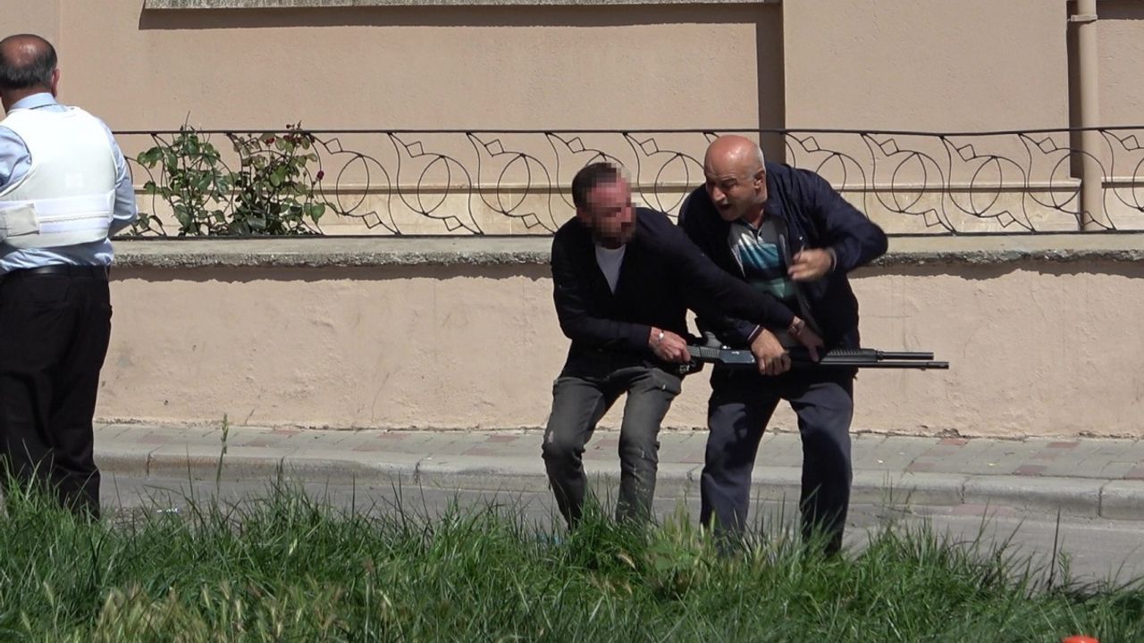 Olay, Pamukkale ilçesine bağlı Hürriyet Caddesi üzerinde meydana geldi. Edinilen bilgiye göre; Dün pompalı tüfekle hareketli dakikalar yaşatan Nuri T., daha önceden girdiği işletmede yediği böreği beğenmediğini işletme görevlisine söyledi. Ardından çıkan sözlü tartışmanın büyümesi üzerine olaya mekanda bulunan diğer 7 kişi daha katıldı. Alevli tartışmanın yerini arbedeye bırakması üzerine 8 kişi Nuri T., kapının önüne çıkartarak darp etti. Uzun süre sert darbelere maruz kalan Nuri T., çevredekilerin yardımı ile canını zor kurtardı. Aradan birkaç gün geçmesinin ardından kendisinin darp edildiğini ve bu konun kendisine saldıranlar tarafından yayıldığı duyan Nuri T., bu durumu hazmedemeyerek eline pompalı tüfeği aldı. Nuri T., sokağa çıkarak havaya rastgele ateş etmesinin ardından darp edildiği dükkânın önüne gitti. Dükkana doğru birkaç kez ateş etmesinin ardından vatandaşların ihbarı üzerine bölgeye çok sayıda ekip sevk edildi. Hareketli dakikaların yaşandığı o anlarda ekiplerin ve babasının uzun süren çabası üzerine Nuri T., elindeki silahı teslim etti. İfadesi alınmak üzere karakola götürülen Nuri T., çıkarıldığı adli makamlarca tutuklanarak cezaevine gönderildi.