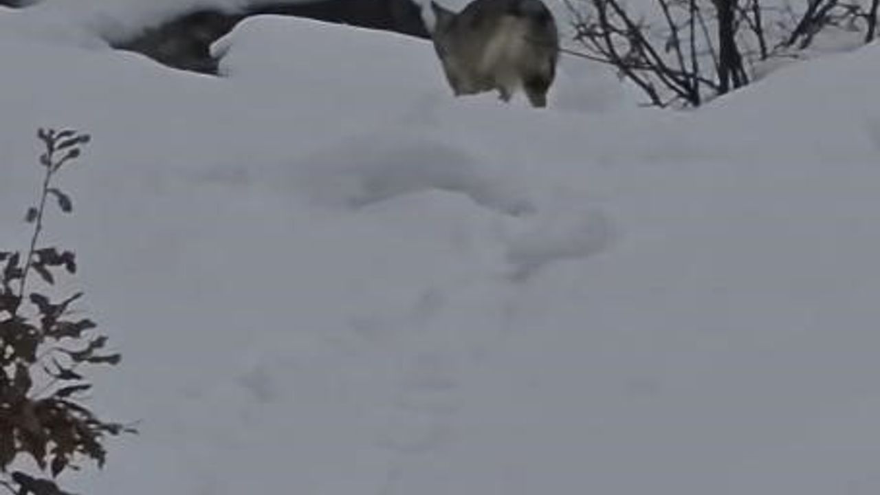 Tunceli’nin Pülümür Vadisi’nde, karla kaplı dağlık alanda yiyecek arayan bir kurt görüntülendi. Doğa Koruma görevlisi Murat Özel tarafından kaydedilen görüntülerde, kurdun bir süre bölgede dolaştığı görüldü. Zorlu kış şartlarının hakim olduğu vadide yiyecek arayışını sürdüren kurt, bir süre sonra gözden kayboldu.