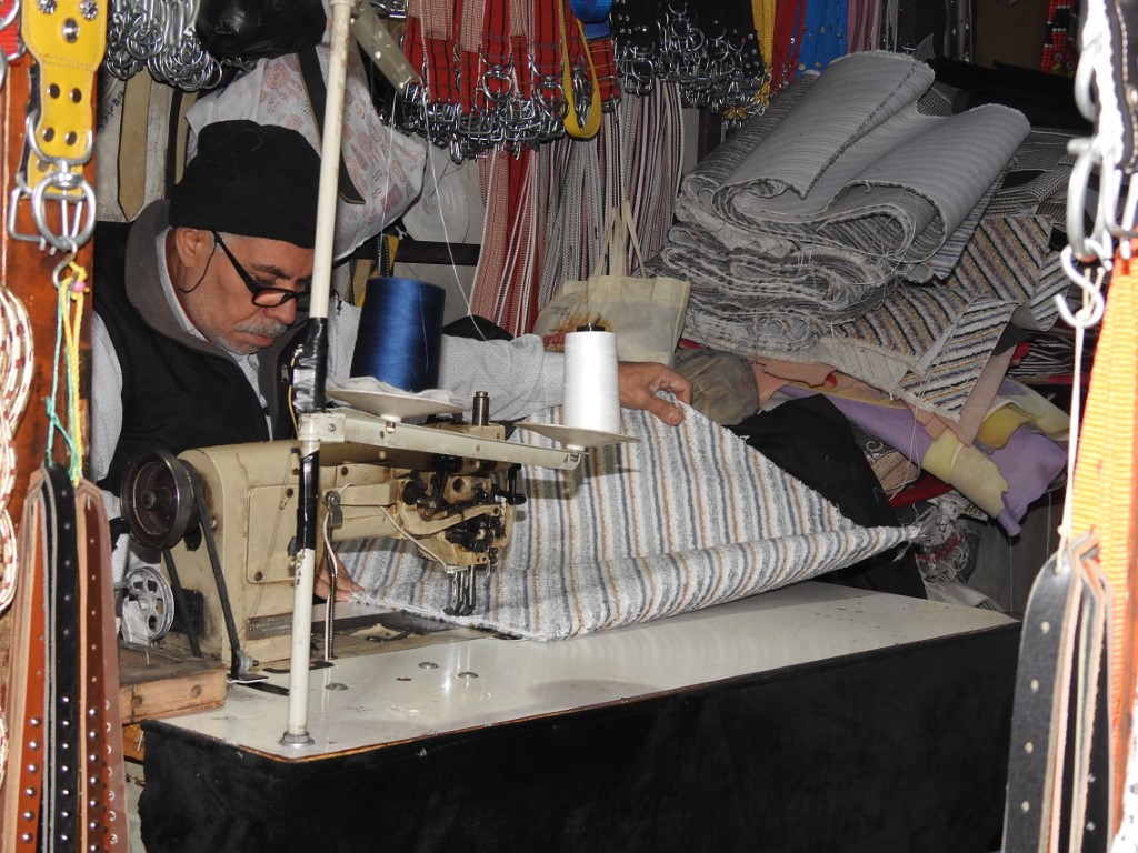 Saraççılık mesleği hakkında bilgi veren Ekrem Yılmaz, “Mesleğimi severek yapıyorum. Burada eğer, semer, heybe gibi çok çeşit üretimi yapıyorum. Deriden ve bezden eğerler yapıyoruz. Gaziantep’e özgü parçalardan çeşitli ürünler çıkarıyoruz. Sırasına göre önce kesip ne yapılacaksa kalıpları oluşturuyoruz. Daha sonra ise yapmaya devam ediyoruz” dedi.