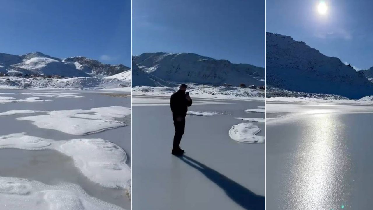 Yetkililer, buz kalınlığının bilinmediğini ve yüzeyin her noktada güvenli olmayabileceğini belirterek vatandaşlara "Göl üzerine çıkmayın" uyarısında bulundu.