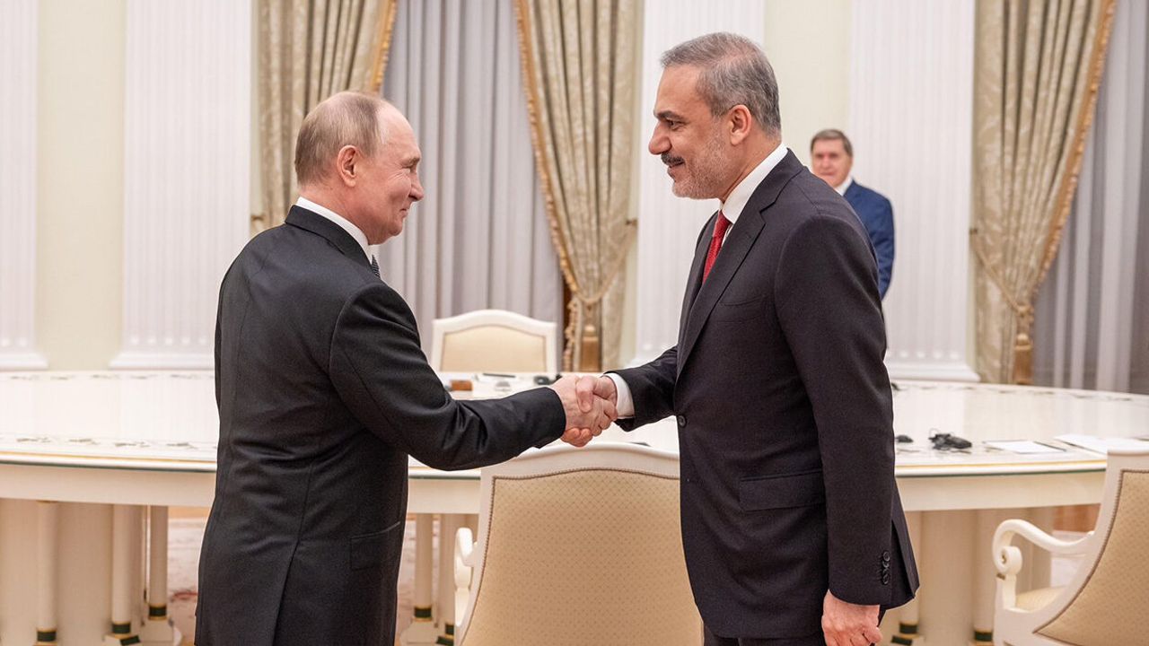 Bakan Fidan ise yaptığı açıklamada, Putin’e Cumhurbaşkanı Recep Tayyip Erdoğan'ın selamlarını getirdiğini belirterek, "Açılış konuşmanızda ifade ettiğiniz gibi iki ülke arasındaki ilişkiler gerçekten fevkalade iyi gidiyor. Ticaret konusunda atılması gereken adımlar var. Ukrayna konusundaki mümkün olan her türlü arabuluculuk faaliyetlerini devam ettirme konusunda biz de kararlıyız. Suriye konusunda iki lider olarak ortaya koyduğunuz istikrar politikasını devam ettirme konusunda biz de elimizden geleni yapıyoruz. Moskova'daki temaslarımız esnasında bir araya geldiğim bütün arkadaşlarla da bunu görüşme imkanım oldu" dedi.