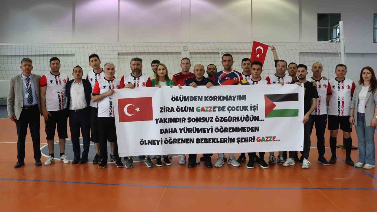 Kayseri Şehir Hastanesi yönetimi tarafından sağlık çalışanlarının motivasyonunun artırılması amacıyla voleybol turnuvası düzenlendi. Çeyrek final öncesinde sahaya çıkan sağlıkçılar, İsrail’in zulmü altında olan Filistinli çocukları unutmadı. Sahaya, "Ölümden korkmayın, zira ölüm Gazze’de çocuk işi. Yakındır sonsuz özgürlüğün. Daha yürümeyi öğrenmeden, ölmeyi öğrenen bebeklerin şehri Gazze" yazılı pankartla çıktı. Pankart maçı izlemek için gelenleri de duygulandırdı.