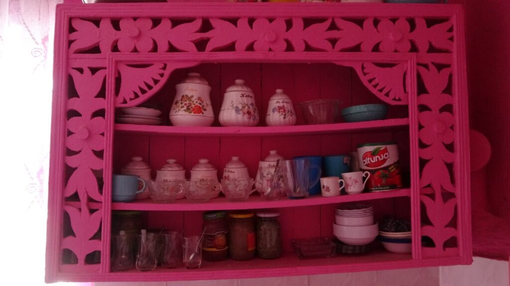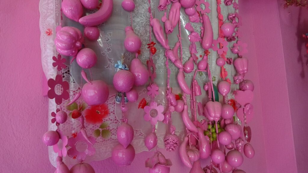Tek katlı evinin dış kapısından duvarlarına, evin içerisinde bulunan süs eşyalarına kadar pembeye boyayan Akkul, pembe aşkının çocukluğunda başladığını söyledi.