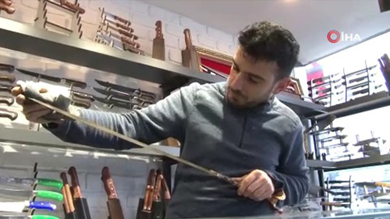 Bıçak ustası Emre Göçeri, adını Suriye’nin başkentinden alan Şam çeliğinden kılıç üretti. 4. yüzyıldan itibaren yaygın olarak kullanılan kılıçlardan üretmek isteyen Göçeri, kılıcın sapında ise bakır kullandı. Damarlı görüntüsü, esnek ve keskin yapısı öne çıkan ve görüntüsü ile dikkat çeken kılıç, tamamen el emeği ile 11 günde üretildi. Kılıcın çeliğinin 275 kat dövüldüğünü ifade eden Göçeri, el emeği göz nuru olan kılıcı 110 bin TL’den satışa çıkardı. Damascus olarak da bilinen çeliği, Sivas bıçağında da kullanacağını ifade eden Göçeri, “Biz Damascus’u koç boynuzu ile birleştirmeyi düşünüyoruz” dedi.