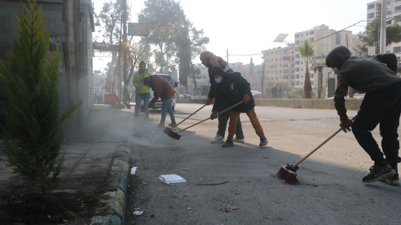 Güzel günler için ellerine kürek, süpürge ve el arabası alan gönüllüler, umutlu yarınlar için çevredeki çöpleri toplayıp sokakları süpürdü. Hafız Abdullah, "Belediye yerine biz gençler temizlik yapıyoruz. Eskiden belediye yoktu, her yer çöplük içindeydi. Şimdi biz etrafı düzenleyip ağaçları boyuyoruz. Şam'ı temizleyerek yeniliyoruz" dedi.
