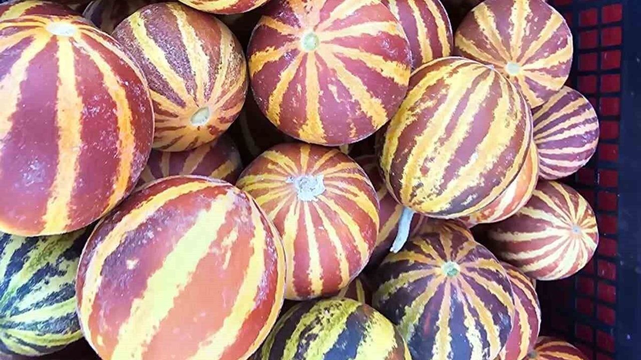 Elazığ’da kokusu, tadı ve görüntüsüyle dikkat çeken şamama kavunu tezgahtaki yerini aldı. Eskiden evlerde evin birçok noktasına asılan, elbiselerin arasına konulan ve gelin çeyizlerine eklenen kokulu süs kavunu büyük bir ilgi görüyor. Elma ve ceviz büyüklüğündeki süs kavununu görenler ise hayretler içinde kalıyor.