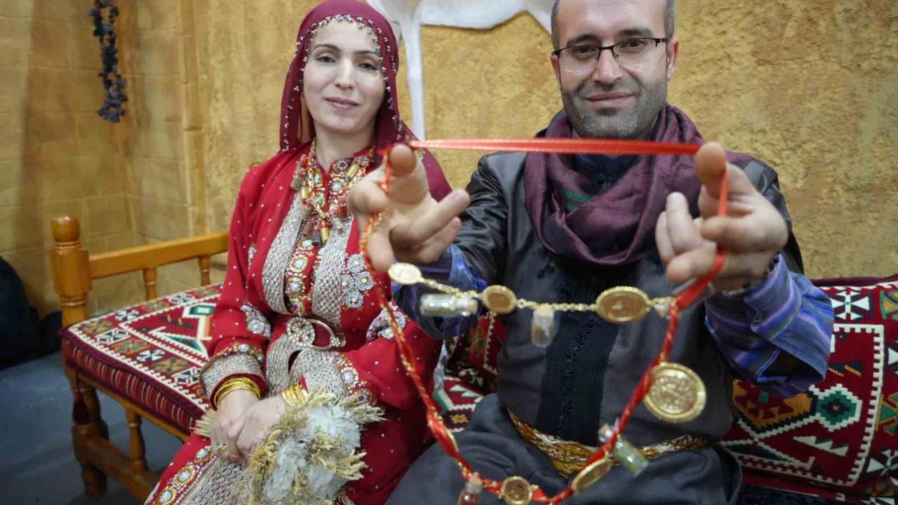 Şanlıurfa’nın düğünlerinin geleneksel ve renkli atmosferlerinde yaşanan değişim de etkinlikte tanıtıldı. Etkinlik alanında gelin-damat takı törenlerinde yaşanan değişimi anlattı. Ata tohumundan yapılan kolye gelin ve damada takıldı. Gelin ve damat altın fiyatlarının çok pahalandığını ata tohumunun daha değerli olduğunu söyledi.