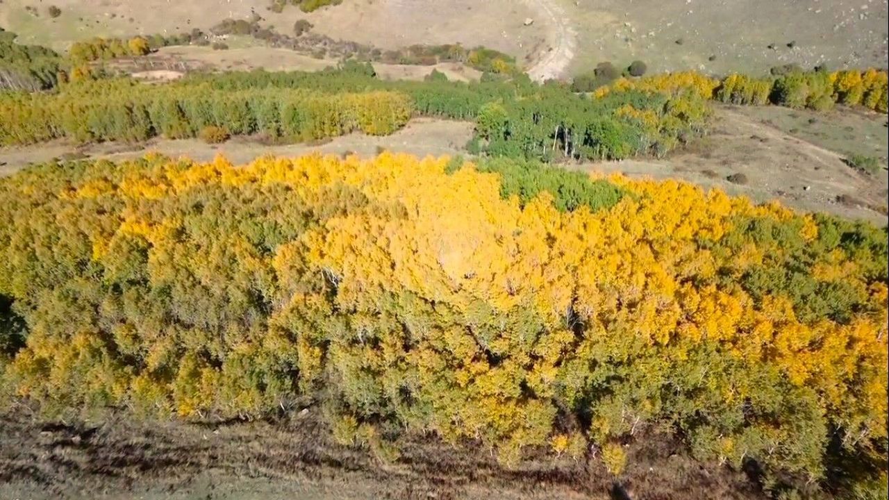 Sarı, yeşil ve gökyüzünün mavisiyle bütünleşen sarıçam ormanları kart postal görüntüler ortaya çıkarırken, Sarıkamış sarıçam ormanlarında yaşanan renk cümbüşü dron ile görüntülendi.