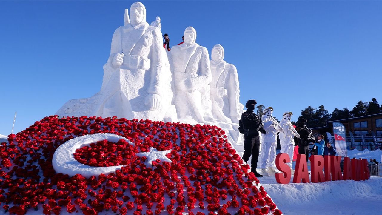 Sarıkamış Kayak Merkezinde yapılan kardan heykeller eksi 5 derece soğukta, yaklaşık 200 kamyon kar kullanılarak ortaya çıkarıldı. Yapımı yaklaşık 5 gün süren kardan asker heykellerin açılışı törenle yapıldı. Törene Aile ve Sosyal Hizmetler Bakanı Mahinur Özdemir Göktaş, Gençlik ve Spor Bakanı Osman Aşkın Bak, Kars Valisi ve Belediye Başkan Vekili Ziya Polat, AK Parti Kars Milletvekili Adem Çalkın, Eski Bakan Ahmet Aslan, kurum yöneticileri ve vatandaşlar katıldı.