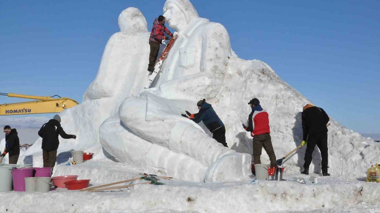 Yaklaşık 200 kamyon kar taşınarak yapılan kardan heykeller Sarıkamış şehitlerini anma etkinliklerinin 1’inci günü olan 4 Ocak Cumartesi günü saat 15.30’da yapılacak.