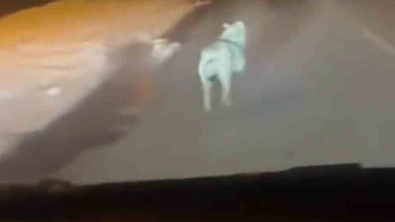 Hakkari’nin Yüksekova ilçesine bağlı Vezirli Mahallesi’ne inen kurdu aracıyla kovalayan bir kişi, o anları cep telefonuyla görüntüledi.