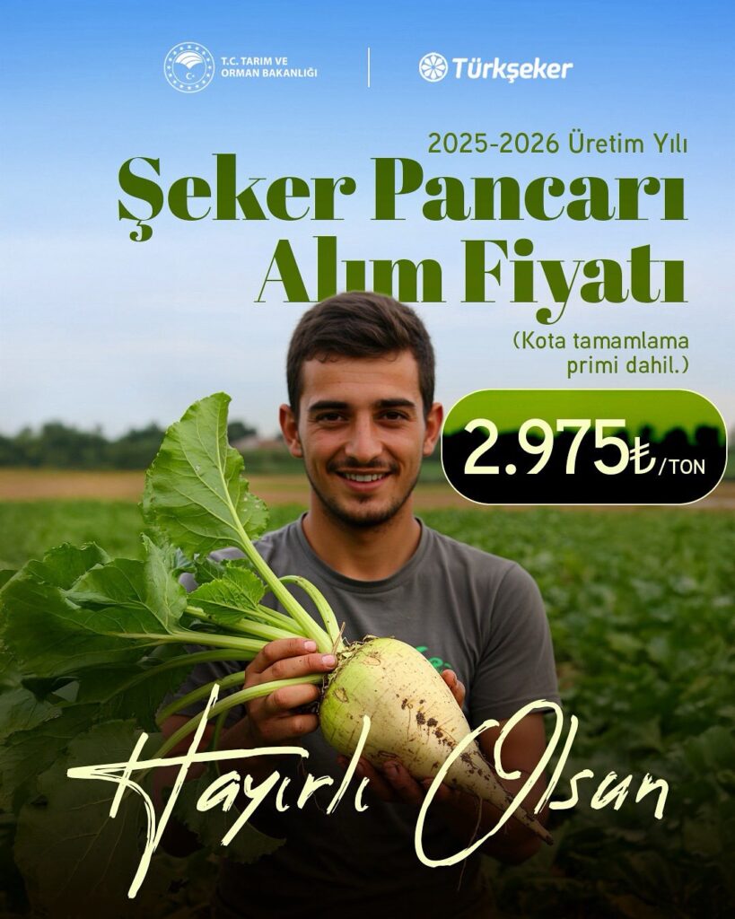 - Kota tamamlama primi ile birlikte şeker pancarı alım fiyatı 2.975 TL’ye ulaştı.