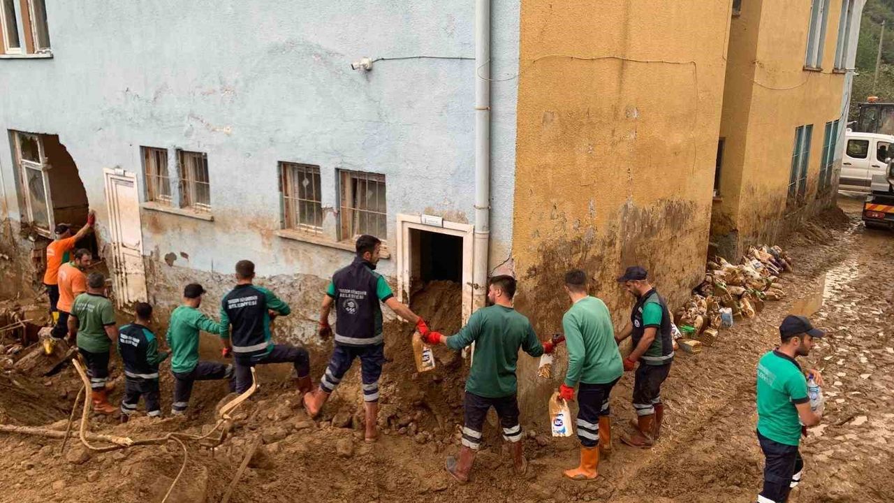 Trabzon Büyükşehir Belediyesi ekipleri, son günlerde yoğun yağışlar nedeniyle sel ve heyelanların etkili olduğu Araklı, Arsin, Sürmene, Yomra ve Vakfıkebir ilçelerinde yoğun bir çalışma yürütüyor. Özellikle eğitim öğretim kurumlarının temizlenmesine ayrı bir özen gösteren ekipler, okulların eğitim öğretime bir an önce devam etmesi hızlı bir şekilde çalışmalarını sürdürüyor.