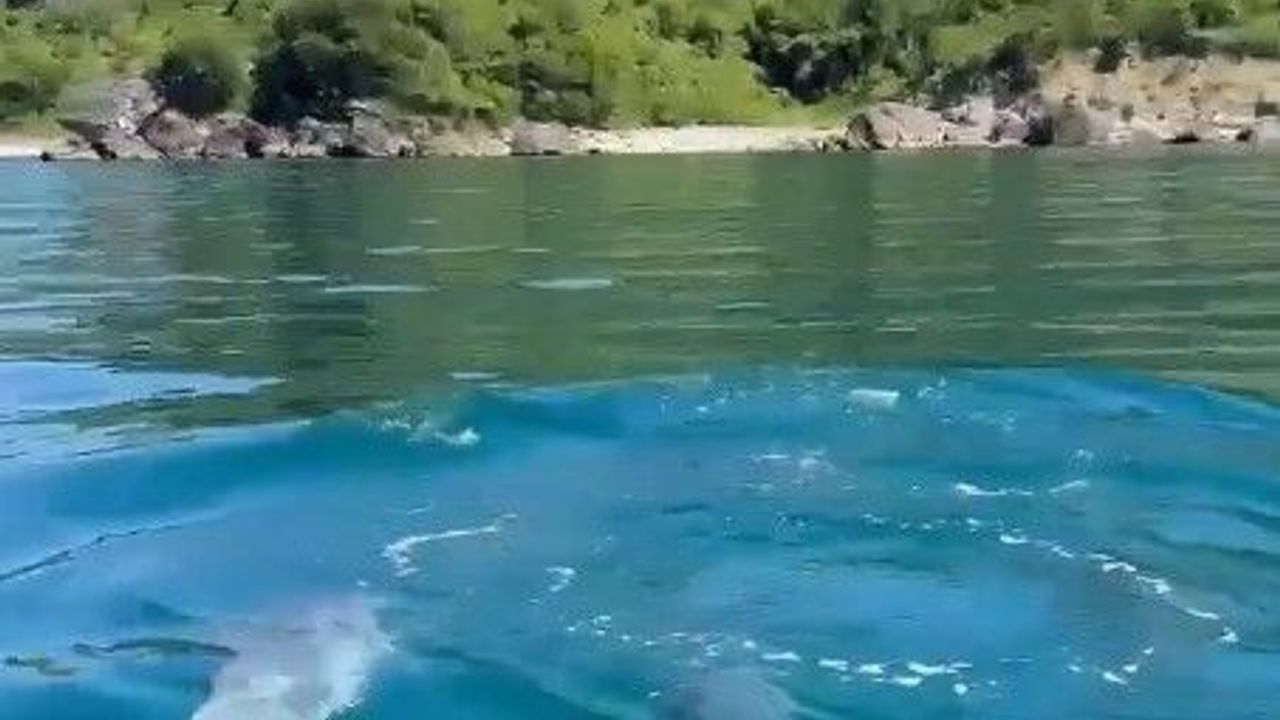 Kastamonu’nun Cide ilçesinde balıkçı teknesinin önünde seyreden yunus sürüsü görsel şölen oluşturdu. Yunusların tekneye “kılavuz kaptanlık” yaptığı anlar cep telefonu kamerasıyla kaydedildi.
