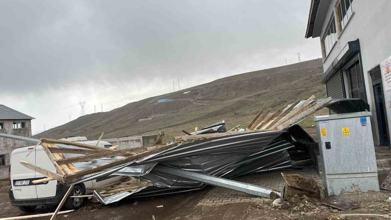 Bitlis’te etkili olan şiddetli rüzgar, bir lisenin ve sanayi sitesindeki bir iş yerinin çatısını uçurdu.