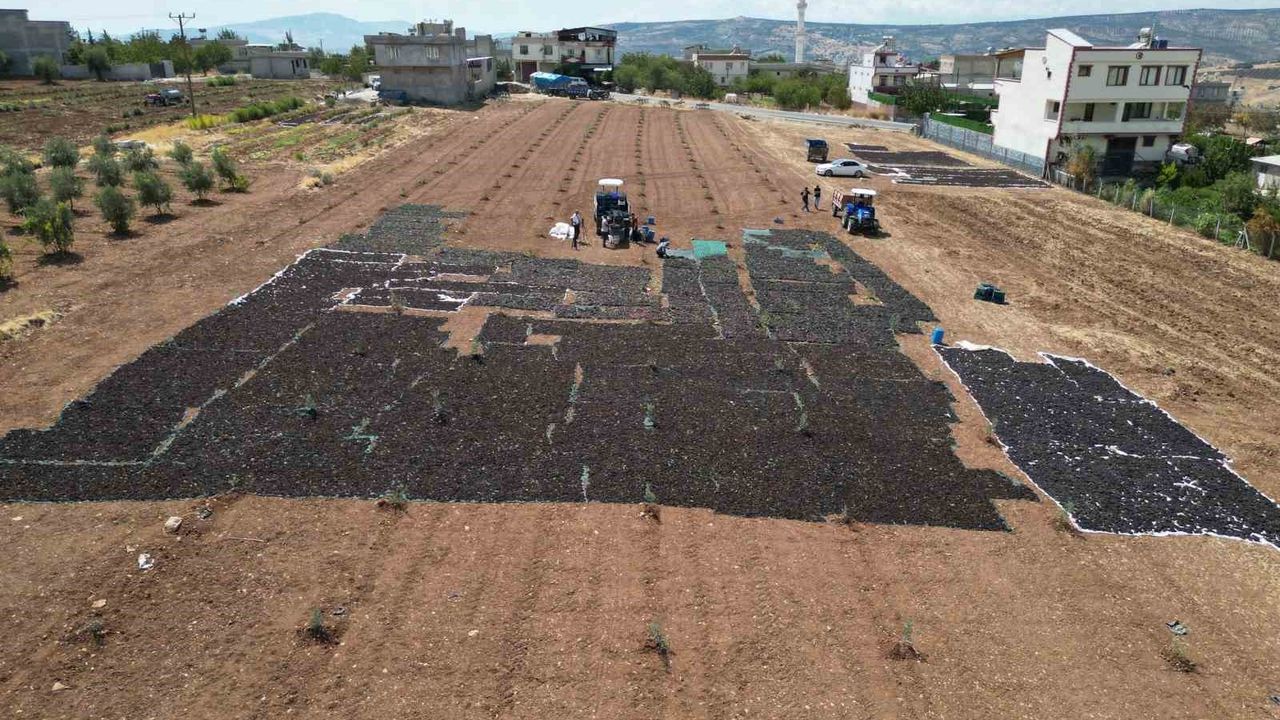 Kilis’in Musabeyli ilçesinde çiftçinin önemli geçim kaynağı olan üzüm yetiştiriciliğinde bağlardan toplanan üzümler, kurutulmak üzere tarlalara serildi.