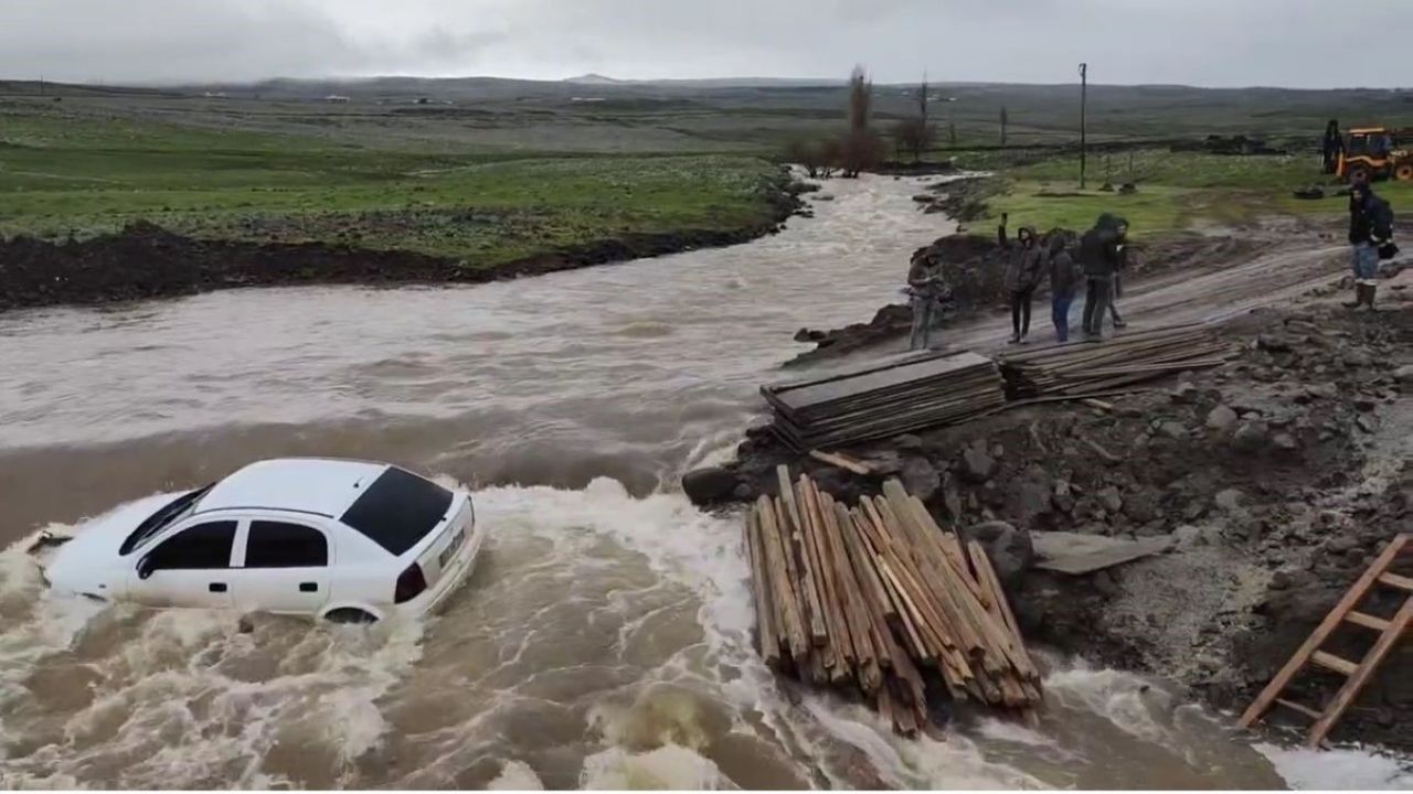 Siverek-Karacadağ bölgesinde taşan köprüden karşı tarafa geçmeye çalışan bir otomobil, suya kapılarak dereye sürüklendi. Otomobilde bulunanalar çevredeki vatandaşların yardımıyla kurtulurken otomobil sel suları arasında mahsur kaldı.