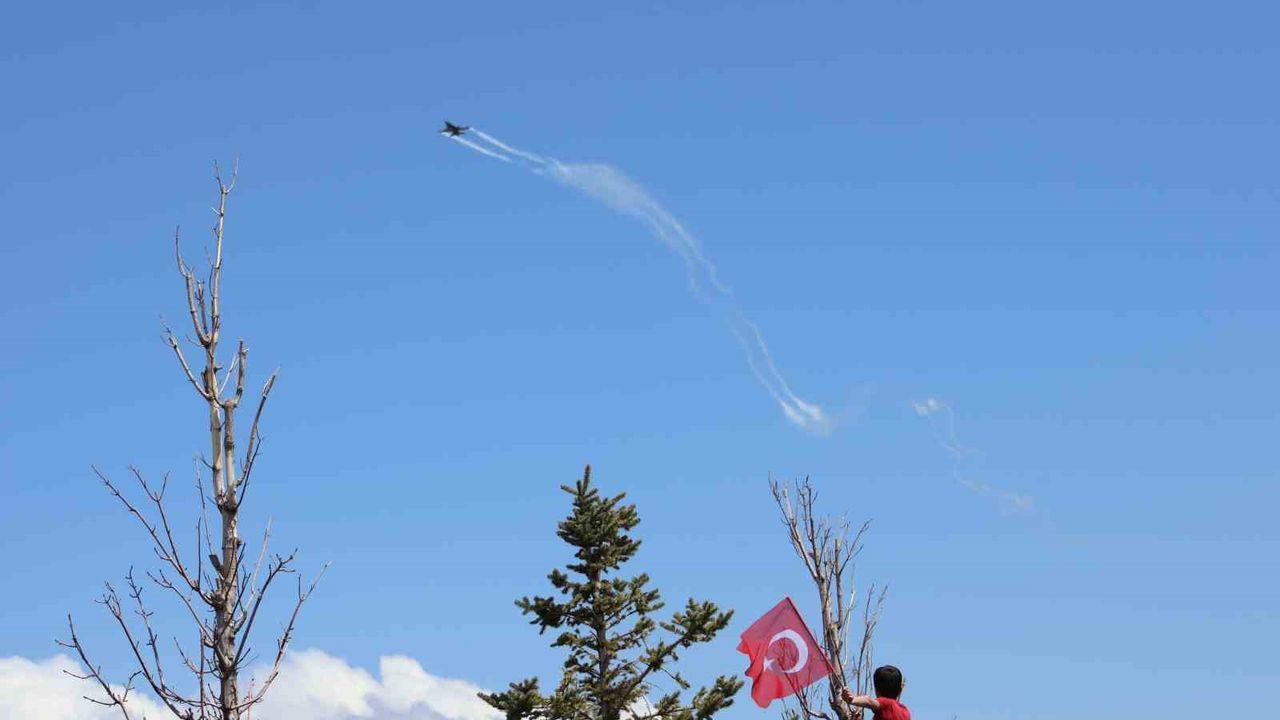 Erzurum’da miting alanı ve Olimpiyat Parkı’nı dolduran binlerce Erzurumlu, Türk Hava Kuvvetleri’nin göz bebeği, akrobasi timi SOLOTÜRK gösterisini büyük bir heyecanla takip etti.