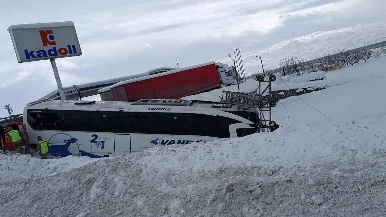 Alınan bilgilere göre kaza, Van-Muradiye kara yolu üzerindeki Alkasnak Mahallesi yakınlarında meydana geldi. Yağışla birlikte kayganlaşan yolda sürücünün direksiyon hâkimiyetini kaybetmesi sonucu meydana gelen kazada, Van Gölü firmasına ait yolcu otobüsü, yol kenarındaki elektrik direğine çarptı.