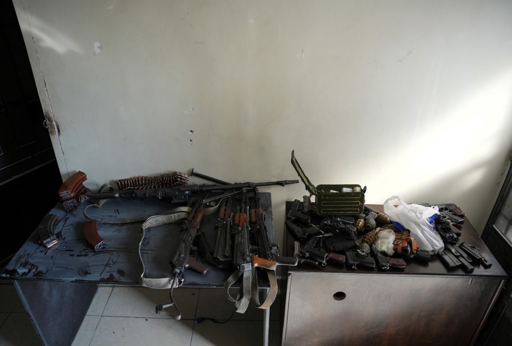 Rejim ordusunda görev yapan askerler, polis ve diğer güvenlik güçleri üzerlerinde bulunan silah ve zimmetli eşyaları merkeze gelerek teslim ediyor.