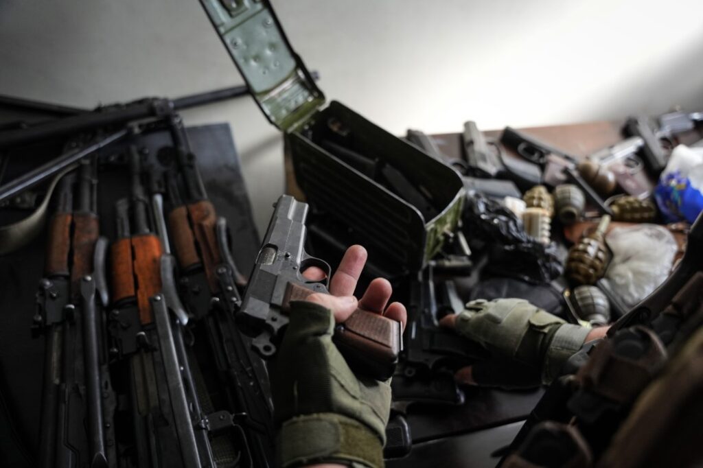 Çok sayıda asker uzun namlulu silahları, el bombalarını ve beylik tabancalarını teslim ederken, bazıları ise orduya ait araçlar ve özel eşyalarını bırakıyor.