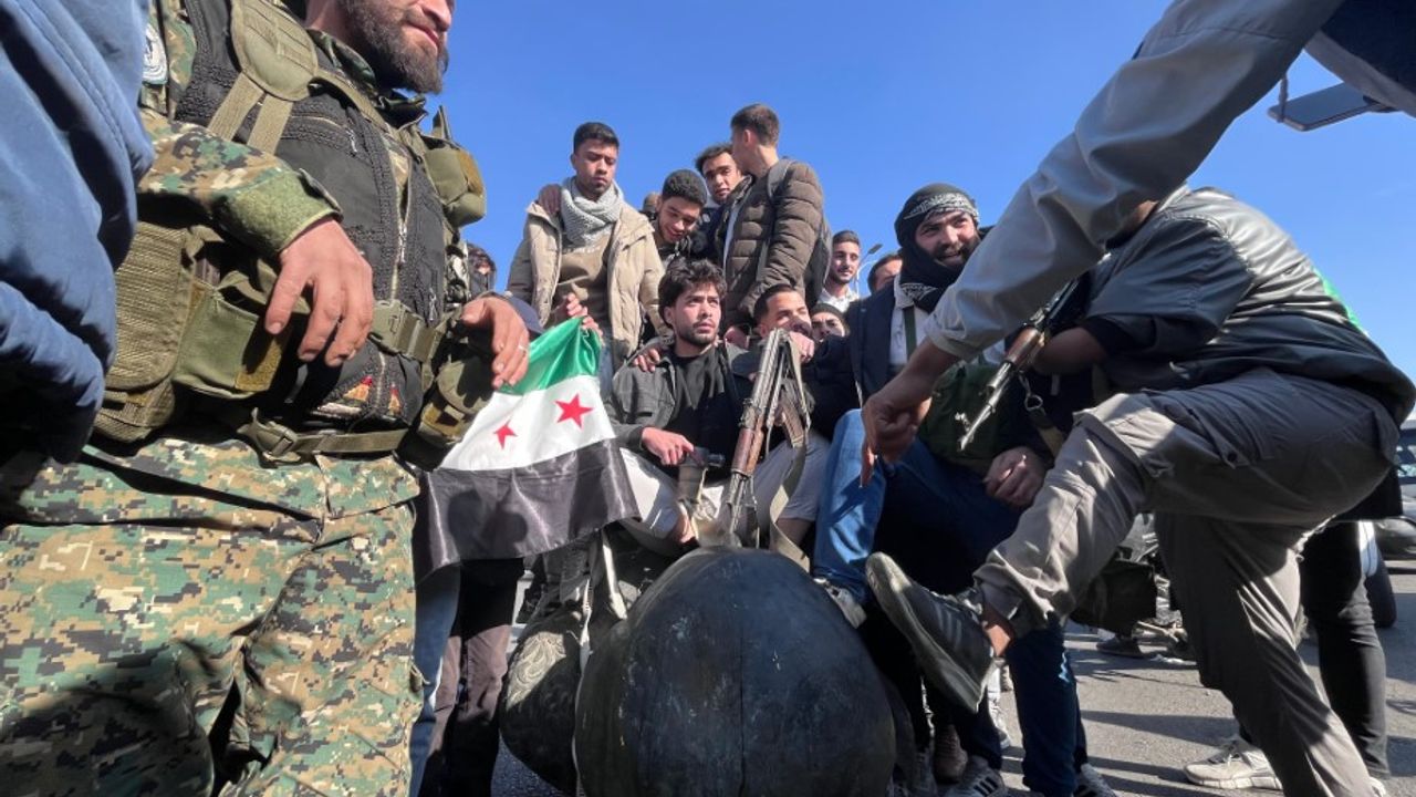 Yerde sürüklenen heykelin üstüne çıkan Suriyeliler, zafer pozu vererek, tepkilerini sloganlarla ifade etti. Heykeli meydanda sürükledikten sonra araçlarının arkasına bağlayan Suriyeliler, “Suriye yaşasın”, “Esad düşsün” ve “Özgür Suriye” sloganları atarak, Şam sokaklarını dolaştı.