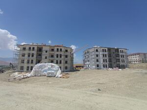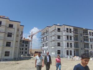 Hastane ve okullar bölgesinde TOKİ tarafından startı verilen 111 konut ve 1 adet 3 dükkanlı ticaret merkezinden oluşan projeyi de ziyaret eden Tanış, teknik ekipten çalışmalara yönelik bilgi aldı, çalışanlara kolaylıklar diledi.