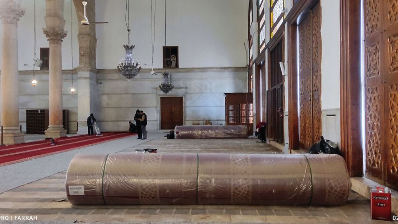 Halıların döşeme işleminin tamamlanma ve caminin açılış tarihi hakkında konuşan el-Muvakkat, "Camii, yeni halılarla Ramazan ayının ilk gününde açılacak ve teravih namazını yeni halıların üzerinde kılacağız" şeklinde konuştu.