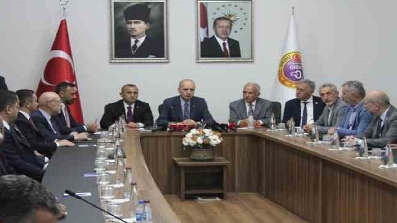 Çeşitli programlara katılmak üzere Ordu’ya gelen Meclis Başkanı Numan Kurtulmuş, ilk olarak Ordu Valisi Tuncay Sonel’i ziyaret etti. Kurtulmuş, Valilik Şeref Defteri’ni imzaladıktan sonra Ordu Büyükşehir Belediye Başkanı Mehmet Hilmi Güler, Ordu milletvekilleri, protokol üyeleri ve ilçe belediye başkanları ile birlikte AFAD Bilgilendirme Toplantısı’na katıldı. Toplantı öncesi basın mensuplarına açıklamalarda bulunan Kurtulmuş, “Ne yazık ki 8-10 Temmuz tarihleri arasında yaşadığımız bir sel ve heyelan felaketinin arkasından bu ziyareti yapmak mümkün oldu. Öncelikle Ordu ilimize ve bütün bu bölgede yaşanan sel felaketi dolayısıyla bu felaketten zarar gören bütün yurttaşlarımıza geçmiş olsun dileklerimi sunuyorum. Tabii çok yoğun bir yağmurdu. Çok büyük bir felaketle karşı karşıya kalındı ama Allah’a çok şükür bir can kaybının olmaması, bu anlamda bir tesellidir” diye konuştu.