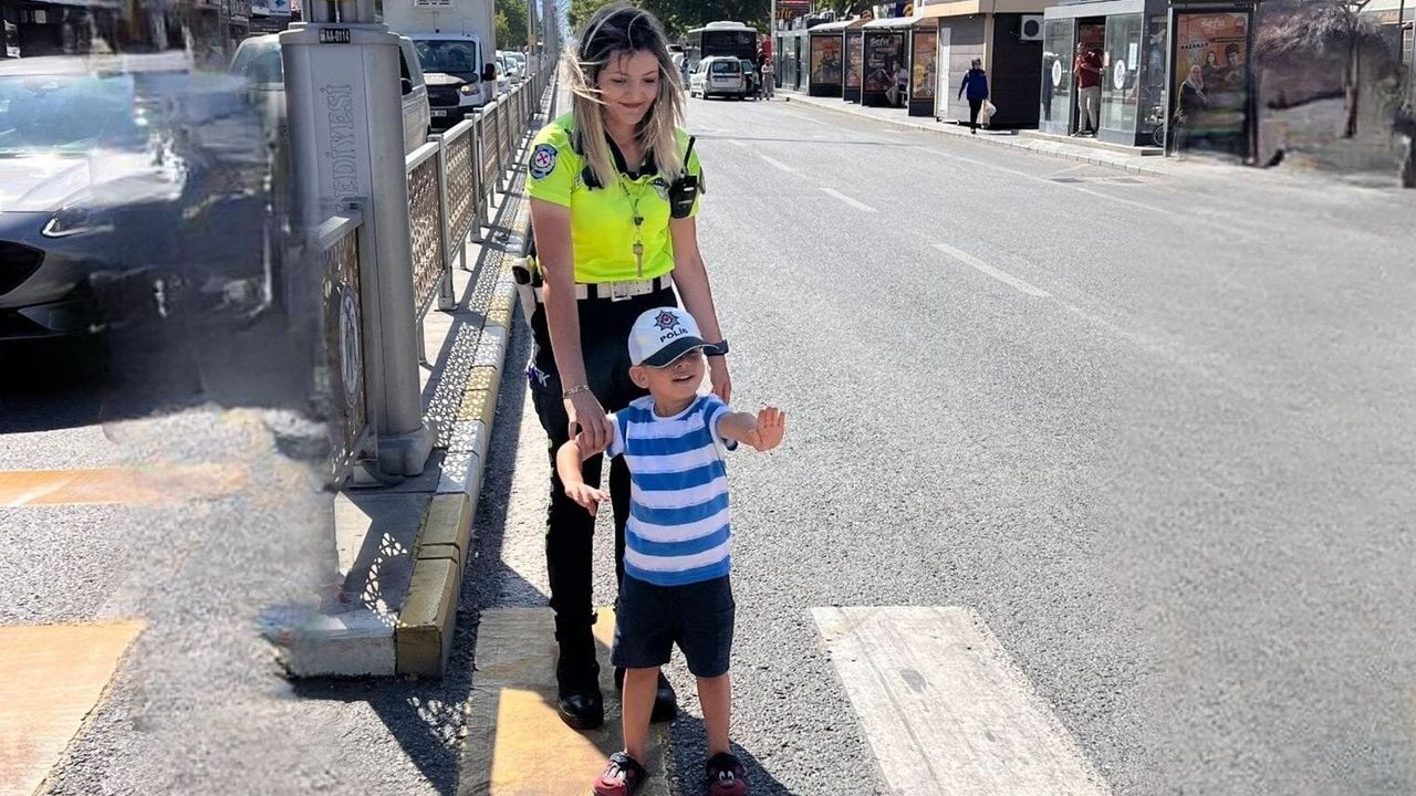 Trafik Tescil ve Denetleme Şube Müdürlüğünde görevli polis ablasına "Ben de büyüyünce polis olacağım" diyen bir çocuğa, hayallerine giden yolda destek verildi. Yaya geçidinde duran ve sürücüleri yönlendiren çocuğun sevinci görülmeye değerdi.